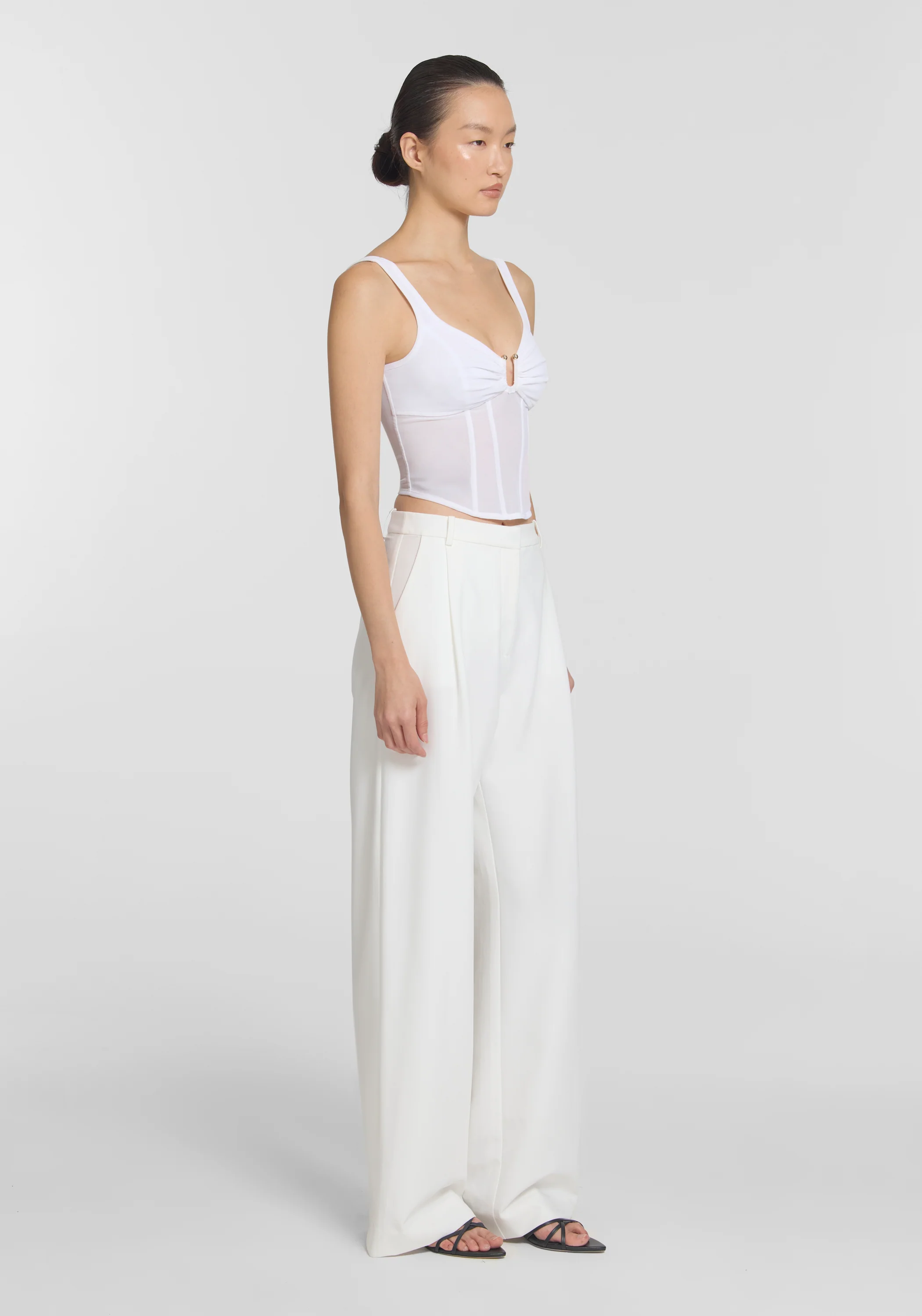 An elevated classic, the Idol Pant is crafted in a soft rayon blend fabrication in elegant ivory. Falling to a full length and wide leg silhouette, this style features front tucks and functional angled side pockets, pairing perfectly with V&W basics and shirting for effortless styling.